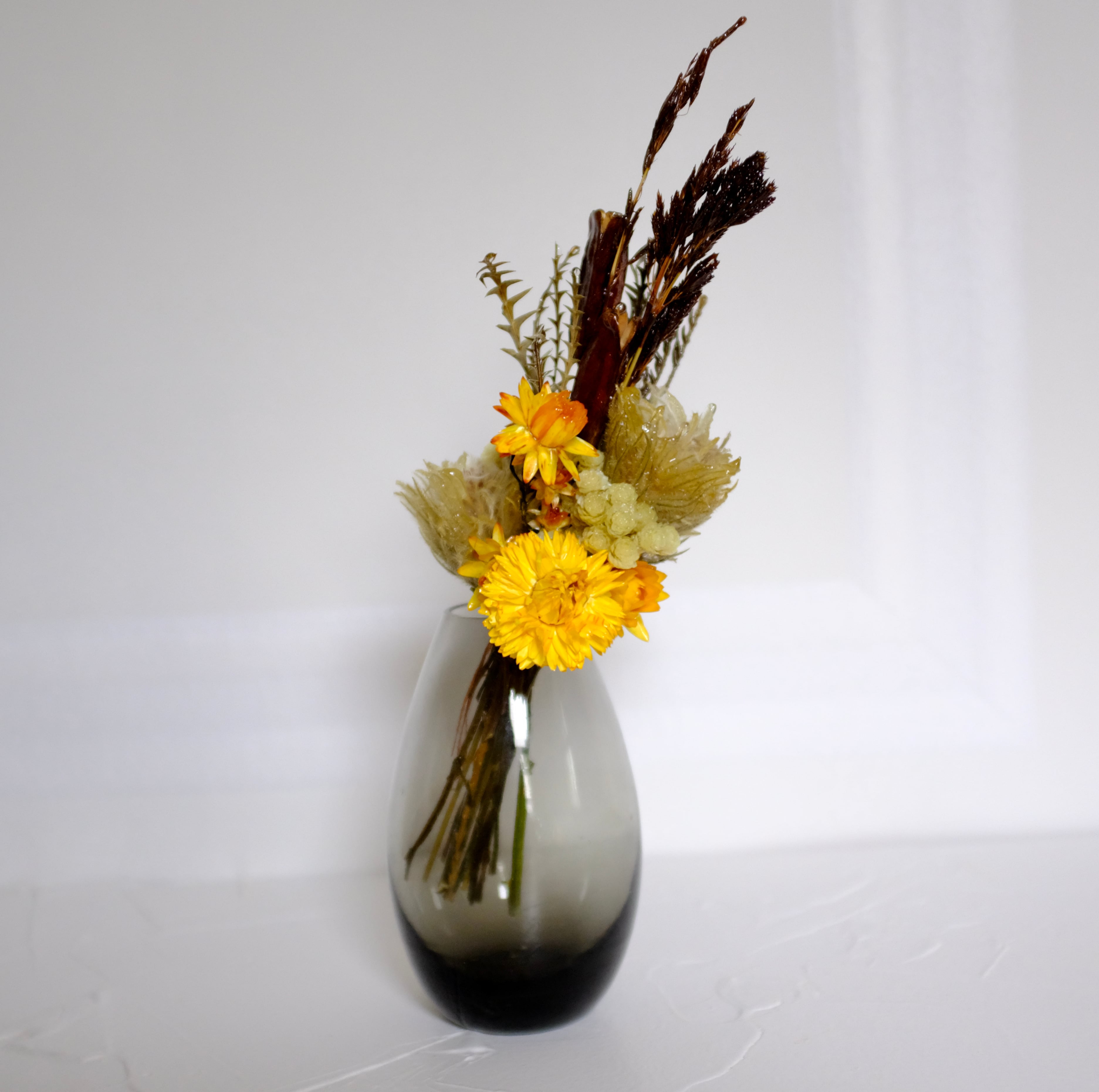 ・ドライフラワーの自然な色、繊細さをお楽しみください。細い茎などはお取り扱いにご注意ください。
